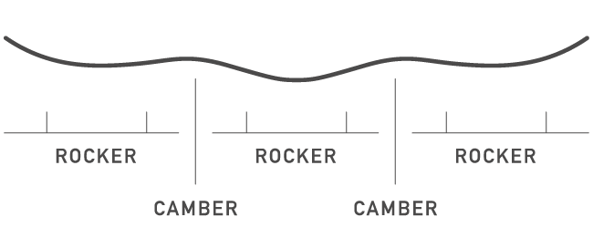 Flying V Bend features rocker zones between and outside your feet for enhanced playfulness, and float and camber zones underneath your feet that focus edge control for crisp snap, added pop, and powerful turns